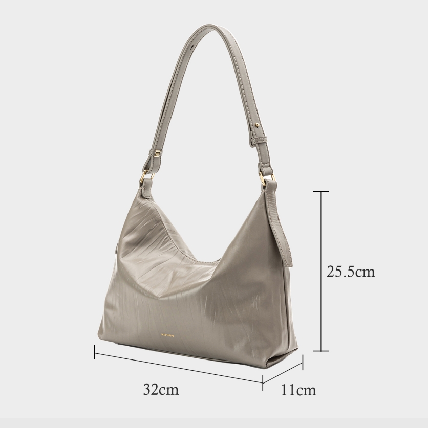 Embracing the natural pleated art, the ruffled vertical textured top-grain cowhide Hobo bag, with its unique texture and casual form, redefines the essence of the urban wanderer style. Every wrinkle is a mark of time, and every vertical line contains the poetry of wandering, as if strolling with you at every corner of the city, exploring unknown stories.