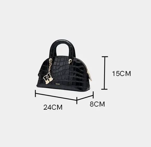 Crafted in a timeless bowling bag silhouette, this bag features a sleek, structured shape crafted from premium top-grain leather with an embossed crocodile texture, delivering a luxurious, durable finish with a rich, raised grain. The dual top zipper closure offers smooth access, while the polished gold-tone hardware and sparkling H-shaped charm serve as stunning focal points, adding a touch of glamour to the minimalist design. Equipped with a top handle for handheld elegance and a detachable, adjustable shoulder strap for crossbody convenience, it offers versatile carrying options for commuting, travel, and special occasions. The soft off-white hue complements every outfit, making it the perfect everyday luxury bag.