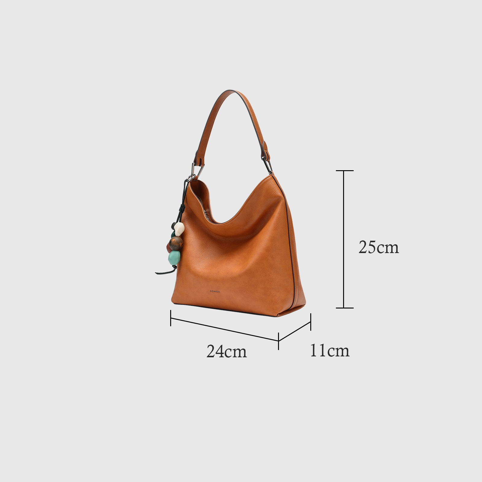 The armpits and one shoulder can be freely combined. With meticulous design, it combines craftsmanship and quality. Selected high-quality leather, with fine texture and top-notch feel. The brand LOGO embossed mark highlights the texture. The distinctive pendant is lively and exquisite, with an outstanding finishing touch. True texture stems from respect for life. When sunlight falls on the bag, it blends seamlessly with the surrounding scene in the play of light and shadow, naturally entering a painting, and the texture is immediately revealed.