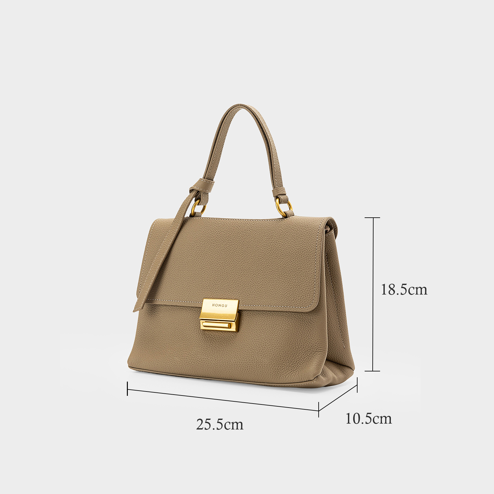 This is a classic flip up handbag, featuring a novel decorative strap design at the handle for a more vibrant look, and a three-dimensional square hardware logo embellishing the front of the bag for a more sophisticated texture. The design of the bag is soft yet not collapsing, paired with antique gold hardware, showcasing a retro temperament.