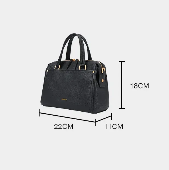 Crafted from premium leather, this structured handbag combines elegance with everyday functionality. Its roomy interior and sturdy double handles make it perfect for carrying essentials in style. Available in Pitch Black and Elephant Gray, it’s a versatile companion for both workdays and weekends.