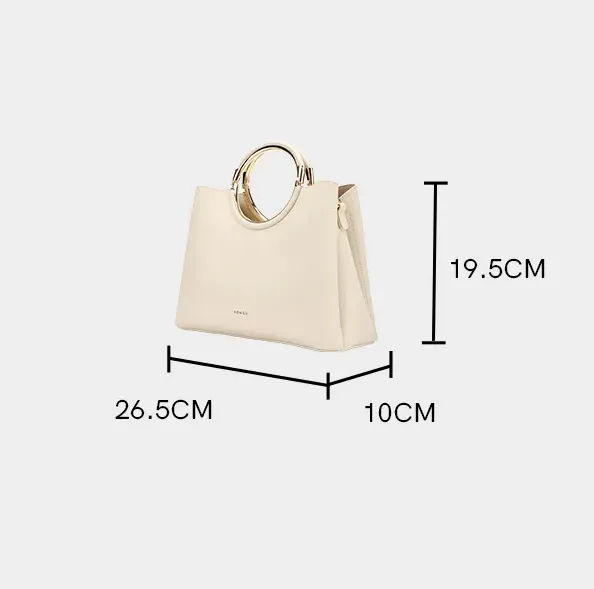 Inspired by a timeless minimalist tote silhouette, crisp, structured lines shape a sleek, upright bag body. Crafted from premium top-grain tumbled leather, it delivers a soft, supple, luxurious handfeel, with a durable pebbled texture that resists scuffs and develops a beautiful natural patina over time. The standout polished gold-tone circular top handle serves as a stunning focal point, combining effortless elegance with practical handheld carry. Equipped with a detachable, adjustable shoulder strap for crossbody convenience, it offers versatile carrying options for commuting, travel, and special occasions. The warm caramel hue complements every outfit, making it the perfect everyday luxury bag.