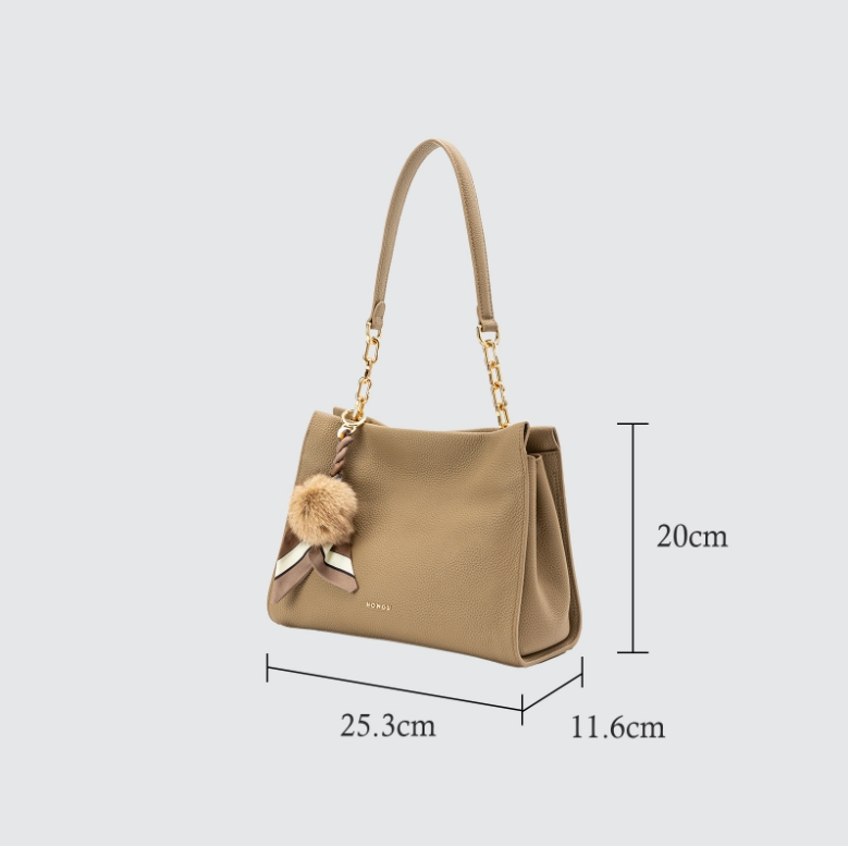 A playful fusion of fluffy pom-poms and fluid silk—detachable for minimalist days or styled for whimsical flair.  The plush spheres radiate warmth, while the hand-knotted scarf dances like a chromatic ribbon, weaving romance into every carry.