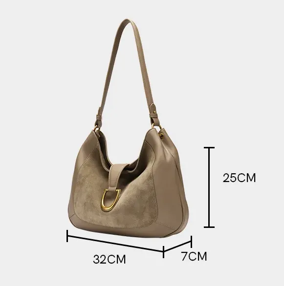 A fusion of texture and elegance, this hobo bag combines suede and leather in a perfect balance of softness and structure. The supple suede offers a delicate, matte finish, while premium cowhide ensures durability and shape retention. Reinforced with synthetic leather in high-wear areas for added resilience.