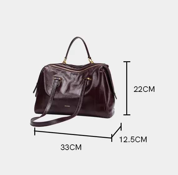 Crafted from premium cowhide leather, this handbag features a distinctive textured finish that exudes understated luxury. The natural grain and rich tones highlight the leather's raw beauty, while refined metal hardware adds both durability and sophisticated detailing.